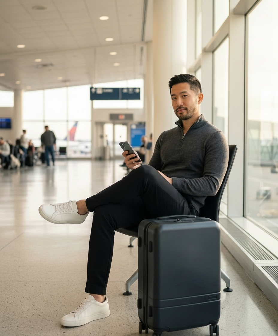 Eight blocks in the heat. Wrinkle-resistant by design, not by treatment. Walks off the train looking exactly like it did when you got on.