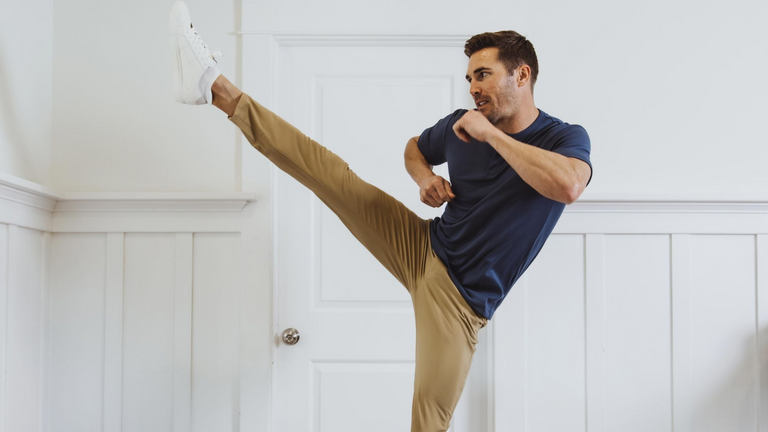 Traditional chinos look great until you have to actually move in them. The TAYLRD Tech Chino starts with real cotton so it breathes and feels right — and adds just enough stretch so it never reminds you it's there.