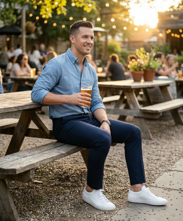 The commute in the sun. A round before noon. The beer garden that wasn't in the plan. The Commuter Pant keeps up with all of it. One pant. No overthinking.